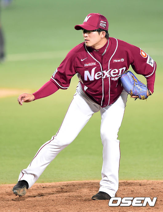 8회말 2사에서 넥센 장시환이 힘차게 공을 던지고 있다.