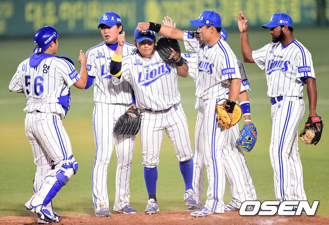 경기 종료 후 삼성 선수들이 승리의 기쁨을 나누고 있다./sunday@osen.co.kr