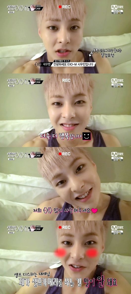 23일 오후 방송된 Mnet ‘뜨거운 순간 엑소’ 3회에는 중국 베이징에서 첫 방송 무대를 선보인 후 숙소로 돌아와 팬들에게 인사를 하는 시우민의 모습이 그려졌다.