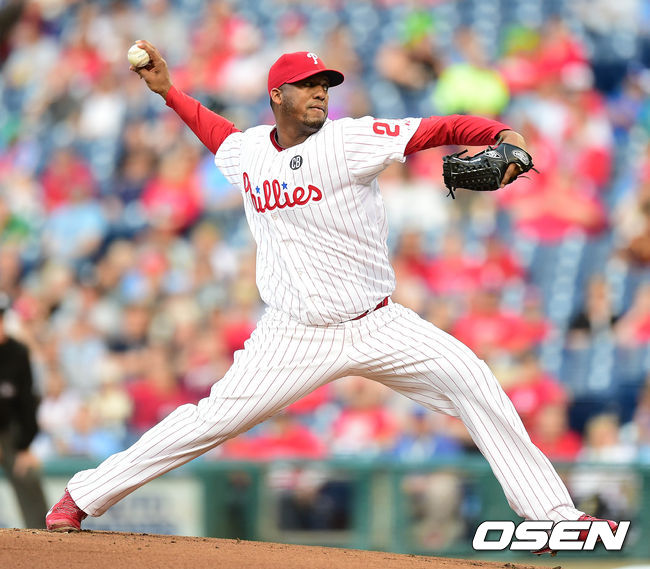 24일(이하 한국시간) 미국 펜실베니아주 필라델피아 시티즌스 뱅크 파크에서 열린 '2014 메이저리그' 필라델피아 필리스와 LA 다저스의 경기 필리스 선발 로베르토 에르난데스가 역투하고 있다.