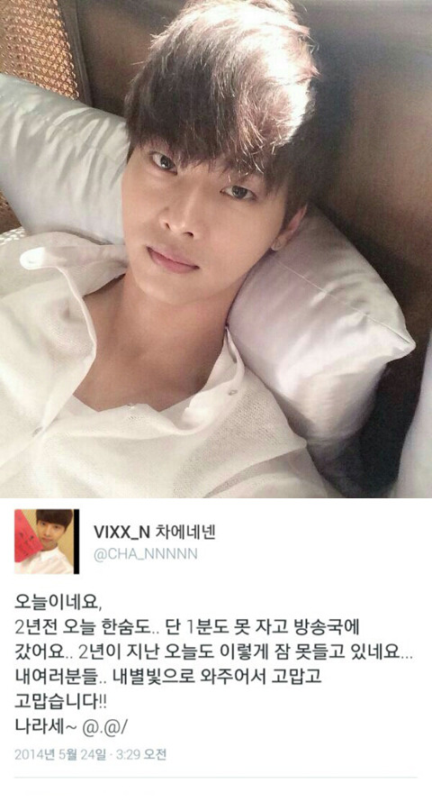 엔은 24일 자신의 트위터를 통해 "오늘이네요, 2년전 오늘 한숨도.. 단 1분도 못 자고 방송국에 갔어요. 2년이 지난 오늘도 이렇게 잠 못 들고 있네요. 내 여러분들. 내 별빛으로 와줘서 고맙고 고맙습니다! 나라세"라며 첫 데뷔부터 2주년이 지난 지금도 한결같은 사랑을 보내준 팬들에게 정성 어린 감사 인사를 전했다.
