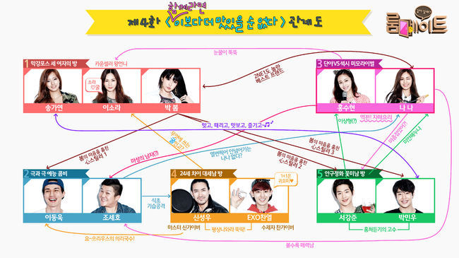 SBS 예능프로그램 '일요일이 좋다-룸메이트'(이하 '룸메이트')가 4회 인물 관계도를 공개했다.