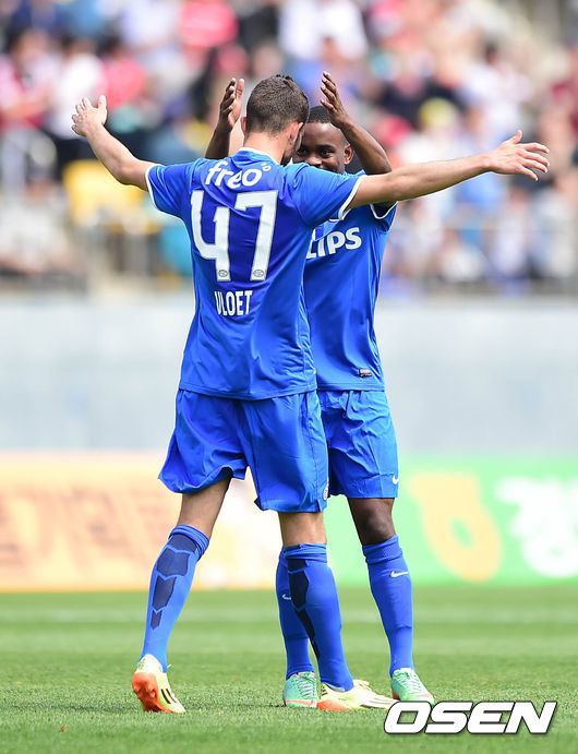 전반 아인트호벤 라이 브로엣이 역전골을 성공시킨후 환호하고 있다.