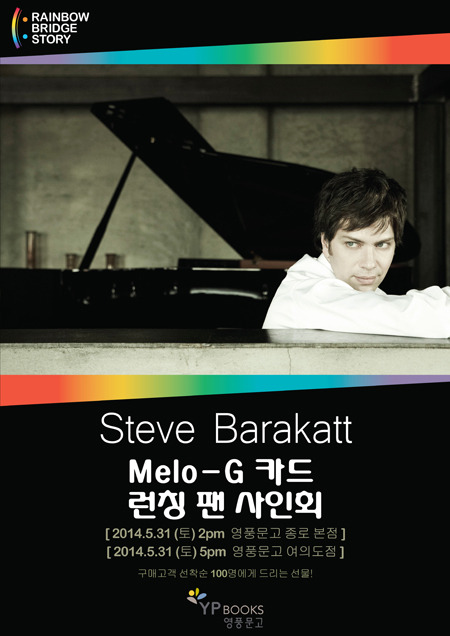 레인보우 스토리 브릿지는 페이스북을 통해 오는 31일 스티브 바라캇 Melo-G 카드 런칭 팬사인회를 오후 2시와 오후 5시 종로점과 여의도점에서 선착순 100명씩을 대상으로 진행한다고 공지했다.