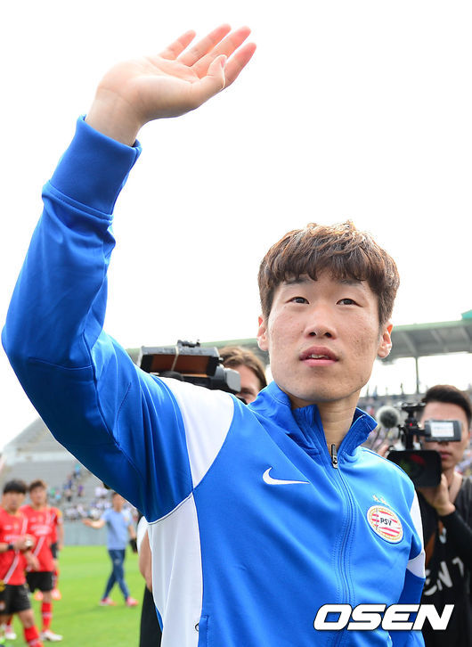 경기 종료 후 아인트호벤 박지성이 그라운드를 돌며 관중석을 향해 인사를 하고 있다./sunday@osen.co.kr