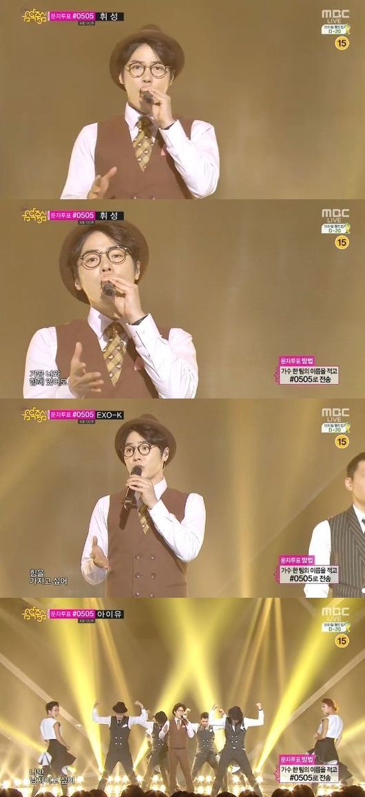 휘성은 24일 오후 생방송된 MBC '쇼 음악중심'에서 곡 '나이트 앤 데이'를 열창했다.