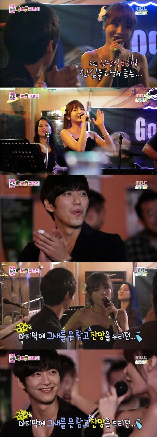 남궁민과 홍진영은 24일 방송된 MBC 예능프로그램 ‘우리 결혼했어요 시즌4’(이하 ‘우결4’)에서 사이판 신혼 여행을 떠난 후 라이브 바에서 노래를 불렀다.