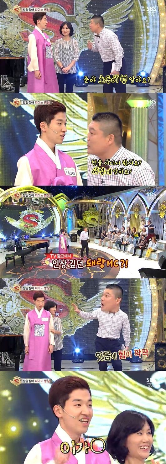 피아노 병창을 하는 천재 뮤지션 최준 씨가 강호동을 TV 광고를 통해 알게 됐다고 말해 웃음을 자아냈다.