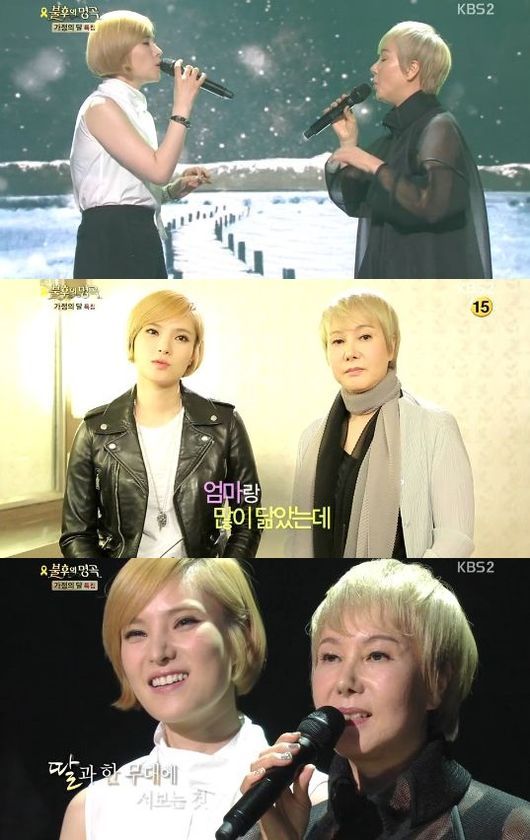 이날 주 사람은 함께 금발로 염색, 비슷한 외모로 관심을 끌었다. 두 사람은 친구처럼 다정한 모습으로 듀엣 무대에 나섰다. 어머니 장숙정씨는 거미를 뛰어 넘는 풍부한 성량을 선보여 관객을 깜짝 놀라게 만들었다.