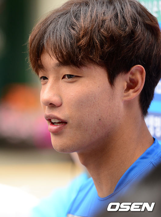 홍정호가 훈련에 앞서 인터뷰를 하고 있다.