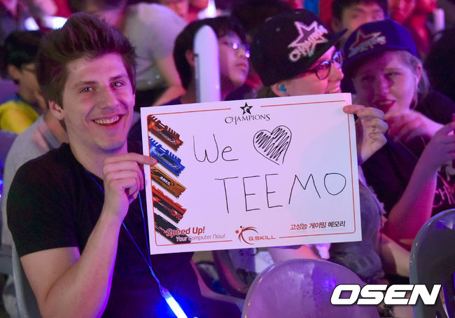 롤챔스 결승전서 한 외국인이 플래카드를 들고 응원을 하고 있다. /spjj@osen.co.kr