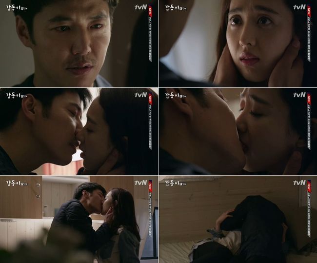 24일 방송된 tvN 금토드라마 '갑동이'(극본 권음미, 연출 조수원)에서는 비행기에서 살인을 저지른 류태오(이준 분)가 체포된 뒤 하무염(윤상현 분)과 오마리아(김민정 분)가 갑작스럽게 키스를 나누며, 그간 눌러왔던 감정을 폭발시키는 모습이 그려졌다.