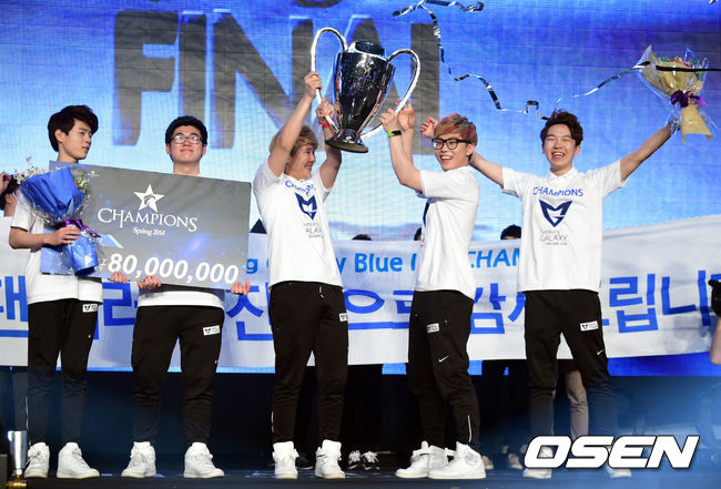 삼성 블루는 24일 경기도 고양시 일산 킨텍스 9홀에서 열린 '핫식스 LOL 챔피언스(이하 롤챔스)' 스프링 2014시즌 나진 실드와 결승전서 '다데' 배어진이 집중 견제 당하는 가운데에서 제 몫을 다하고 '스피릿' 이다윤의 녹턴 카드가 기막히게 통하면서 3-1 승리를 거뒀다. 삼성 블루가 롤챔스 첫 우승을 차지하는 순간이었다.
