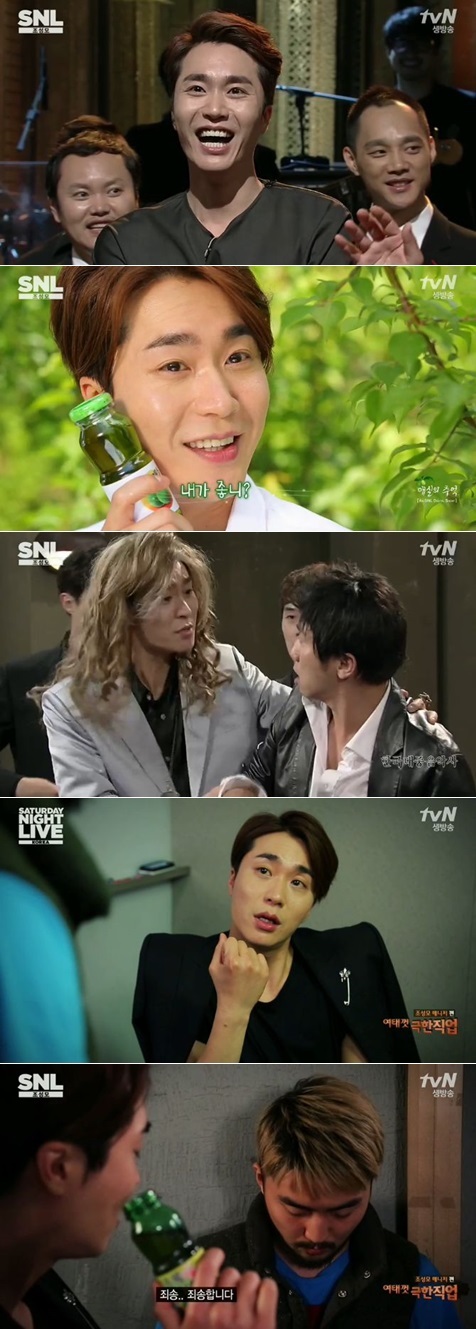 가수 조성모가 'SNL코리아' 호스트로 나서 매실음료 CF로 셀프디스했다.