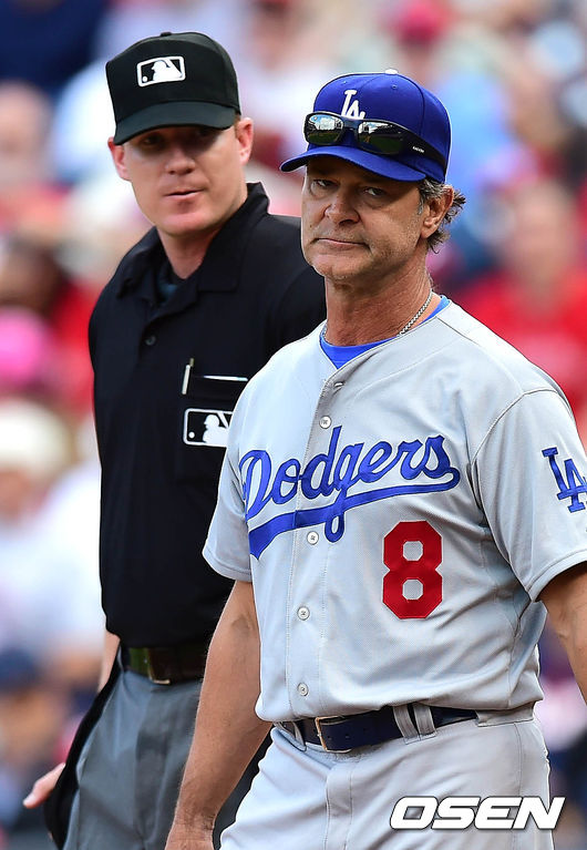 25일(이하 한국시간) 미국 펜실베니아주 필라델피아 시티즌스 뱅크 파크에서 열린 '2014 메이저리그' 필라델피아 필리스와 LA 다저스의 경기 5회말 매팅리 감독이 심판에게 항의 후 다시 덕아웃으로 향하고 있다.