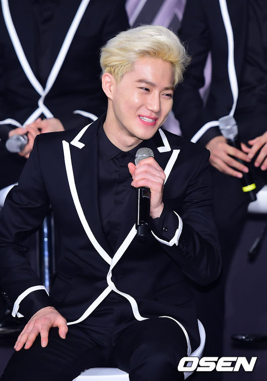 이날 수호는 콘서트 첫 날인 지난 23일 눈물을 보인 것에 대해 "보아, 유노윤호, 샤이니, 에프엑스 등 SM 소속 모든 아티스트 선배들이 격려를 많이 해줬다"며 "나는 우연치 않게 생일이 겹쳐서 멤버들과 생일파티를 했다. 잠깐 눈에 눈물이 고였다. 행복하다고 생각했기 때문"이라고 말문을 열었다.