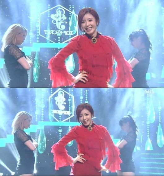 이날 붉은색 의상을 입고 무대에 선 전효성은 매혹적인 춤과 육감적인 바디라인으로 시선을 사로잡았다.
