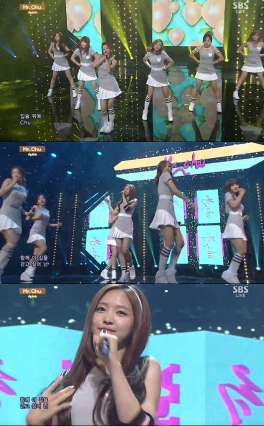 에이핑크는 25일 방송된 SBS 음악프로그램 '인기가요'에서 '미스터 츄'를 열창했다.