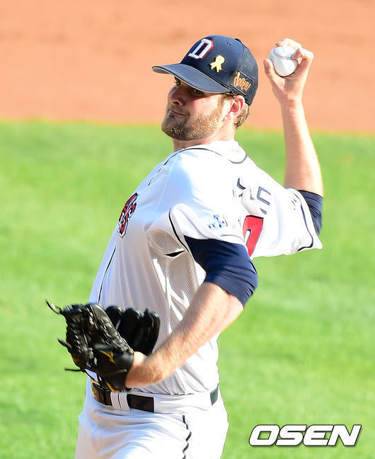 두산 베어스 우완 크리스 볼스테드(28)가 타선의 지원을 받아 승리 요건을 갖췄다.