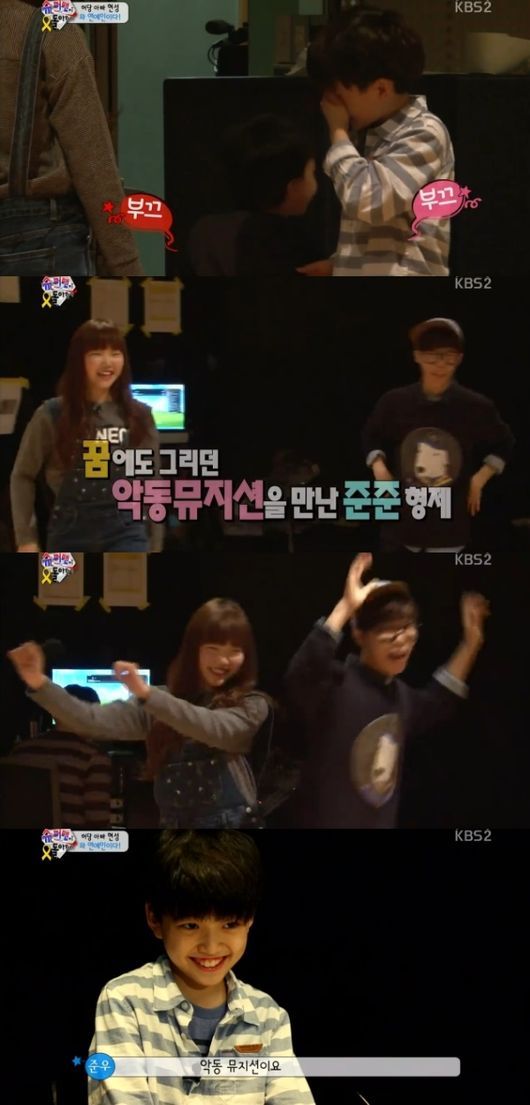 그간 연예인을 봐도 무덤덤했던 준우는 가장 좋아하는 연예인을 묻는 말에 "악동뮤지션"이라고 답한 것. 준우는 이날 직접 만난 악동뮤지션의 모습을 넋 놓고 바라보며 즐거워했다.