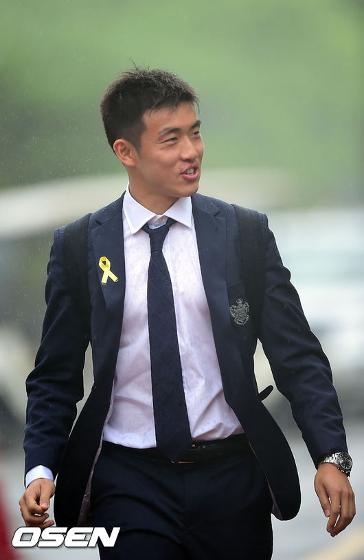 윤석영이 파주NFC에서 도착하며 훈련장 쪽을 바라보며 말을 하고 있다.