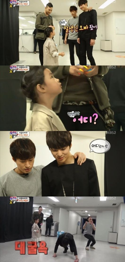 하루는 타블로와 함께 대기실을 구경했는데, "잘 생긴 오빠 왔어"라고 위너 멤버를 소개하는 말에 "어디?"라고 되물어 웃음을 자아냈다.