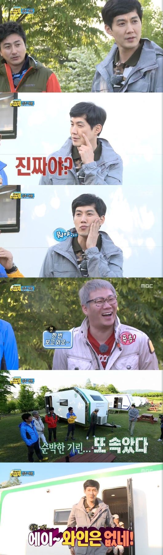 류진은 25일 오후 방송된 MBC 예능프로그램 '일밤-아빠!어디가?'(이하 '아빠어디가')에서 캠핑카에 와인이 있다고 속이는 아빠들의 속임수에 또 한번 속으며 순박함을 과시했다.