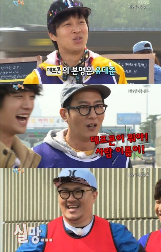 '1박2일' 데프콘이 자신의 본명을 모르는 멤버들에 서운한 표정을 지었다.