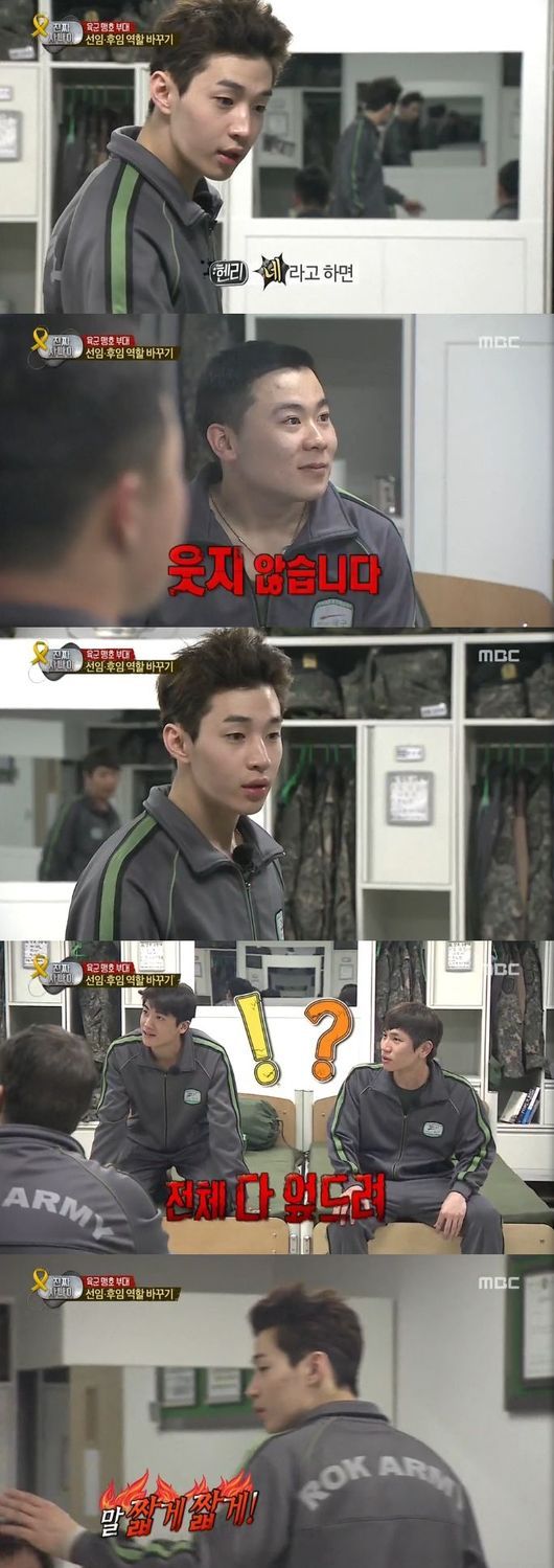 뿐만 아니라 그는 갑자기 "전체 다 엎드려"라고 말해 모든 사람을 당황하게 했다. 그러나 즐거운 시간은 오래 가지 않았다. 야자타임이 끝난 후 이병들은 곧바로 무릎을 꿇었고, 선임들은 이병들을 격리조치하며 다시 복수했다.