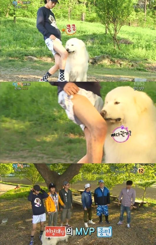 '1박2일' 막내 정준영이 박스 팬티를 입는 벌칙을 받았다.