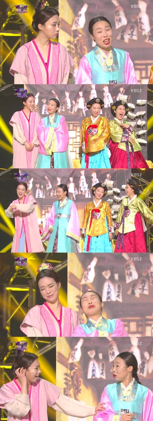 25일 오후 방송된 KBS 2TV '개그콘서트'(이하 '개콘') 코너 ‘후궁뎐’에는 오나미, 장효인, 김경아, 이상훈, 정지민, 김나희, 조승희, 이예림 등이 출연했다.
