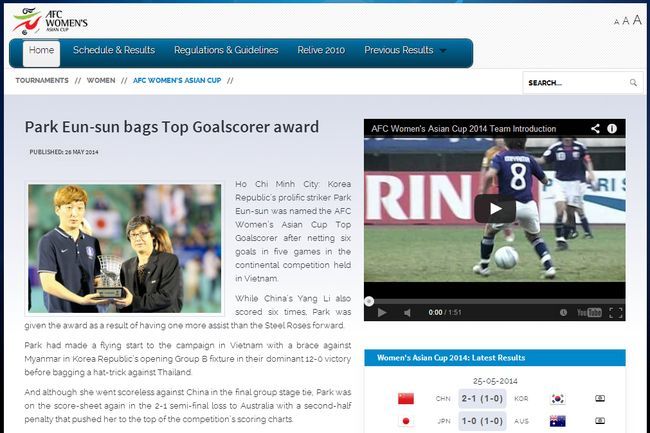 여자 아시안컵 공식 홈페이지 캡처.