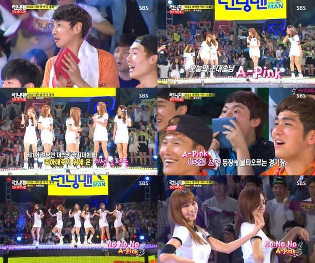 에이핑크는 지난 25일 오후 방송된 SBS 예능프로그램 '일요일이 좋다-런닝맨(이하 '런닝맨')'에 예상치 못한 등장을 했다. '제1회 전국 대학생 딱지대회'를 축하하기 위해 무대에 오른 것.