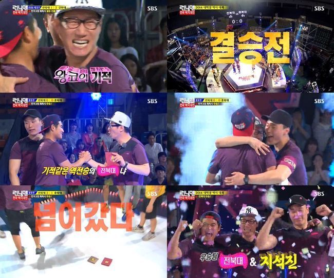 지석진, 전북대팀은 지난 25일 오후 방송된 SBS 예능프로그램 '일요일이 좋다-런닝맨(이하 '런닝맨')'에서 제1회 전국대학생딱지대회에서 우승을 차지했다.