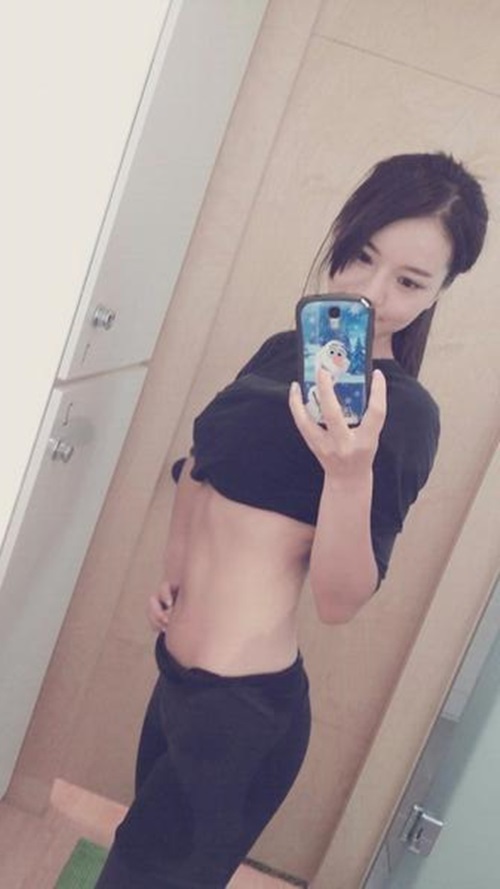 사진 속에는 거울 앞에서 상의를 올려 복근을 노출한 맹승지의 모습이 담겼다.