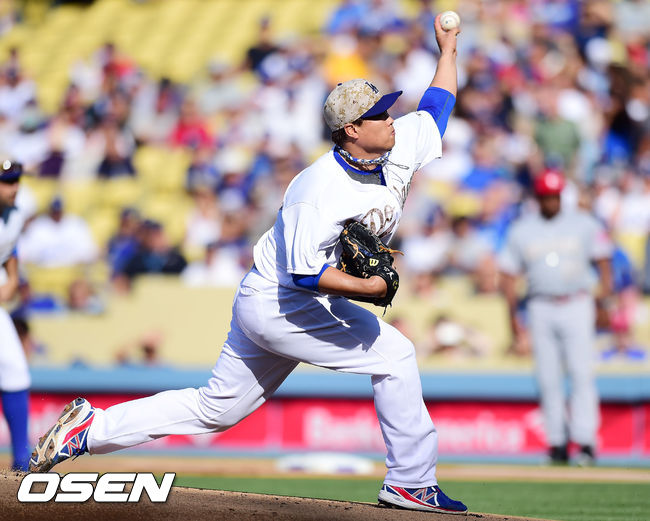 다저스 선발 류현진이 힘차게 공을 뿌리고 있다.