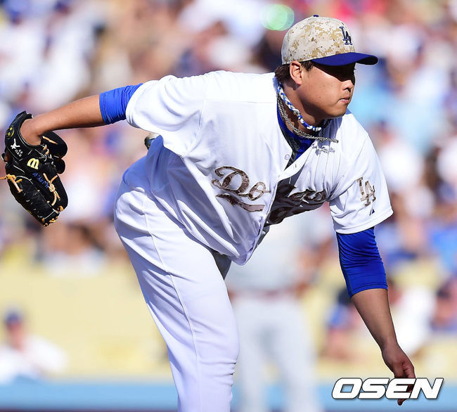 류현진(27, LA 다저스)이 메모리얼 데이를 맞아 군복 무늬가 새겨진 카모플라쥬 유니폼을 입고 경기에 나섰다.