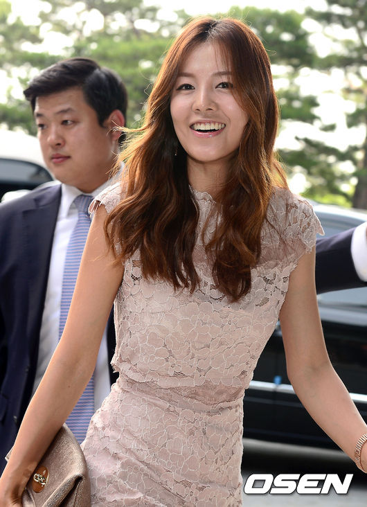 결혼식에 참석한 김성은이 결혼식장으로 발걸음을 옮기고 있다.