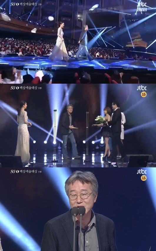정성주 작가는 27일 오후 서울 경희대 평화의 전당에서 열린 제50회 백상예술대상 시상식에서 '밀회'로 TV 극본상 드라마 부문 트로피를 안았다.
