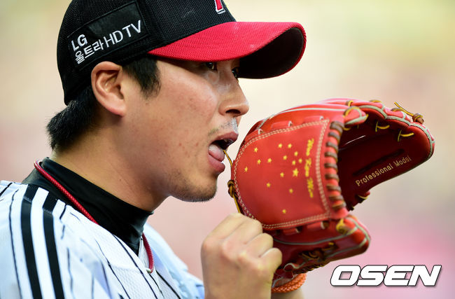 3회초 수비를 마치고 LG 우규민이 더그아웃으로 향하고 있다.