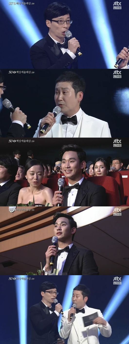김수현은 27일 오후 서울 경희대 평화의 전당에서 열린 제50회 백상예술대상 시상식에서 MC 신동엽과 전회 대상 수상자인 유재석이 입을 모아 '천송이 전지현과 옆에 앉은 전도연 중 누가 이상형인가?'라는 질문에 이같이 답했다.