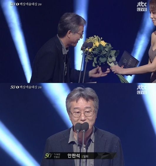 안 PD는 무대에 올라 트로피를 수상한 후 "참여한 분들과 기쁨을 나누고 싶다"며 "유아인, 김희애 특급 칭찬을 해주고 싶다"고 재치있는 소감을 전했다.