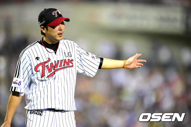 6회초 무사 1,2루에서 LG 우규민이 마운드를 물러나고 있다. 유원상과 교체.