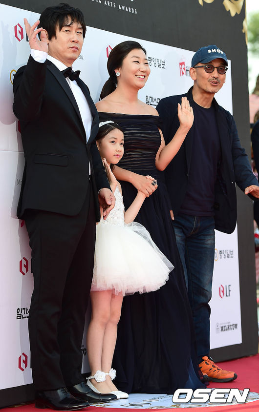 배우 설경구, 이레, 라미란, 이준익 감독이 포즈를 취하고 있다.