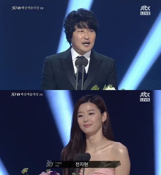 27일 오후 서울 경희대 평화의 전당에서 제 50회 백상예술대상 시상식이 열린 가운데 배우 송강호와 전지현이 각각 영화부문, TV부문의 대상을 차지했다.