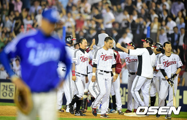 LG는 27일 잠실구장에서 열린 ‘2014 한국야쿠르트 세븐 프로야구’ 삼성과 시즌 4차전서 9회말 짜릿한 역전승에 성공, 5-4로 이겼다.