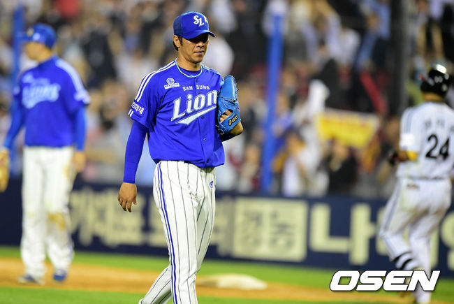 9회말 삼성 임창용이 LG 정의윤에 끝내기 안타를 허용하며 아쉬워하고 있다./jpnews@osen.co.kr