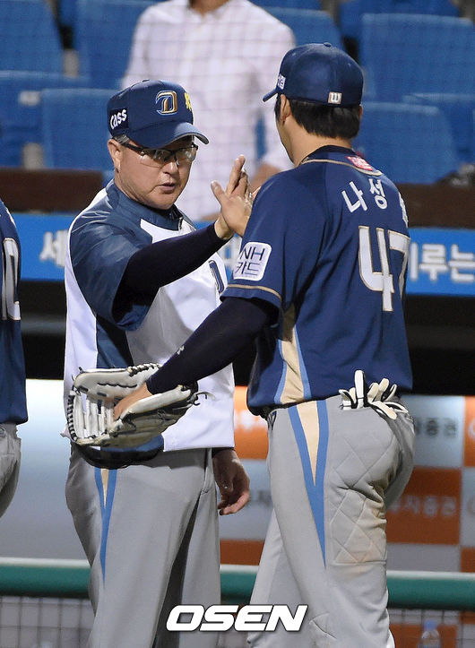 경기 종료후 김경문 감독이 나성범과 승리의 기쁨을 나누고 있다./ ajyoung@osen.co.kr