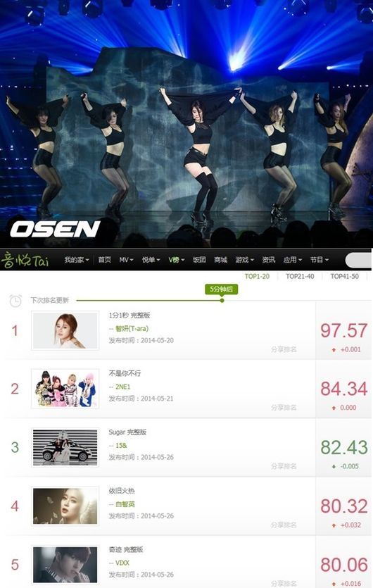티아라 지연의 '1분 1초' 뮤직비디오가 중국에서 인기를 끌고 있다.