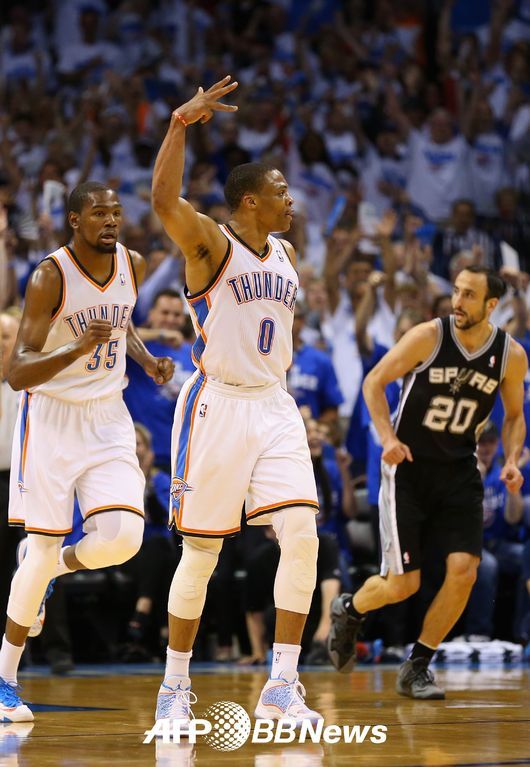 OKC는 28일(이하 한국시간) 미국 오클라호마주 오클라호마시티 체사피크 아레나에서 벌어진 미국프로농구 플레이오프(NBA PO) 서부컨퍼런스 결승 4차전에서 샌안토니오 스퍼스를 105-92로 대파했다. 2연패 뒤 2연승을 달린 OKC는 파이널 진출에 대한 희망을 이어갔다.